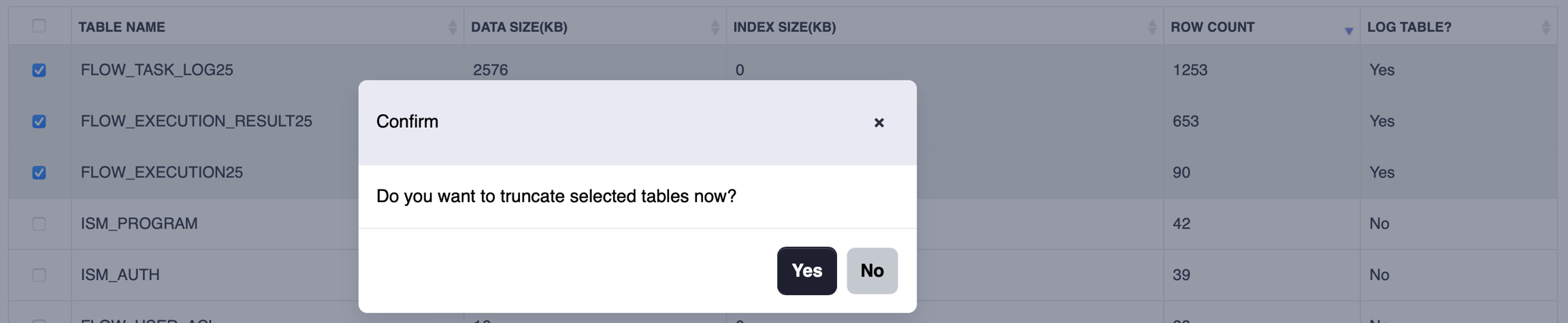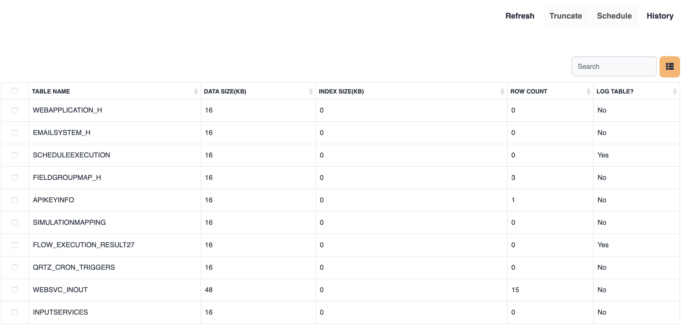 Housekeeping provides easy management tool for the ISM repository database. Log tables can be truncated manually or by schedule. Other tables then log tables are not truncated.