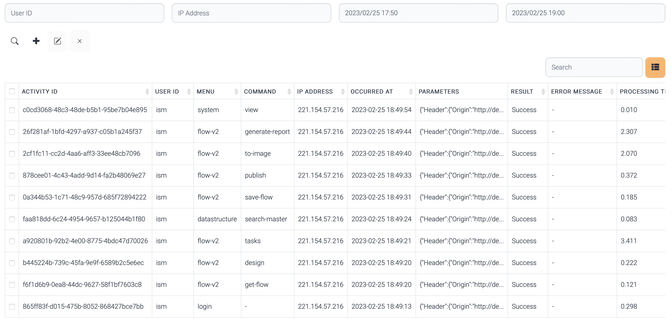 Activities shows all the activities of the users. If activity logging is activated, all the user activities from the login until logout are logged. This logging is not activated by default.