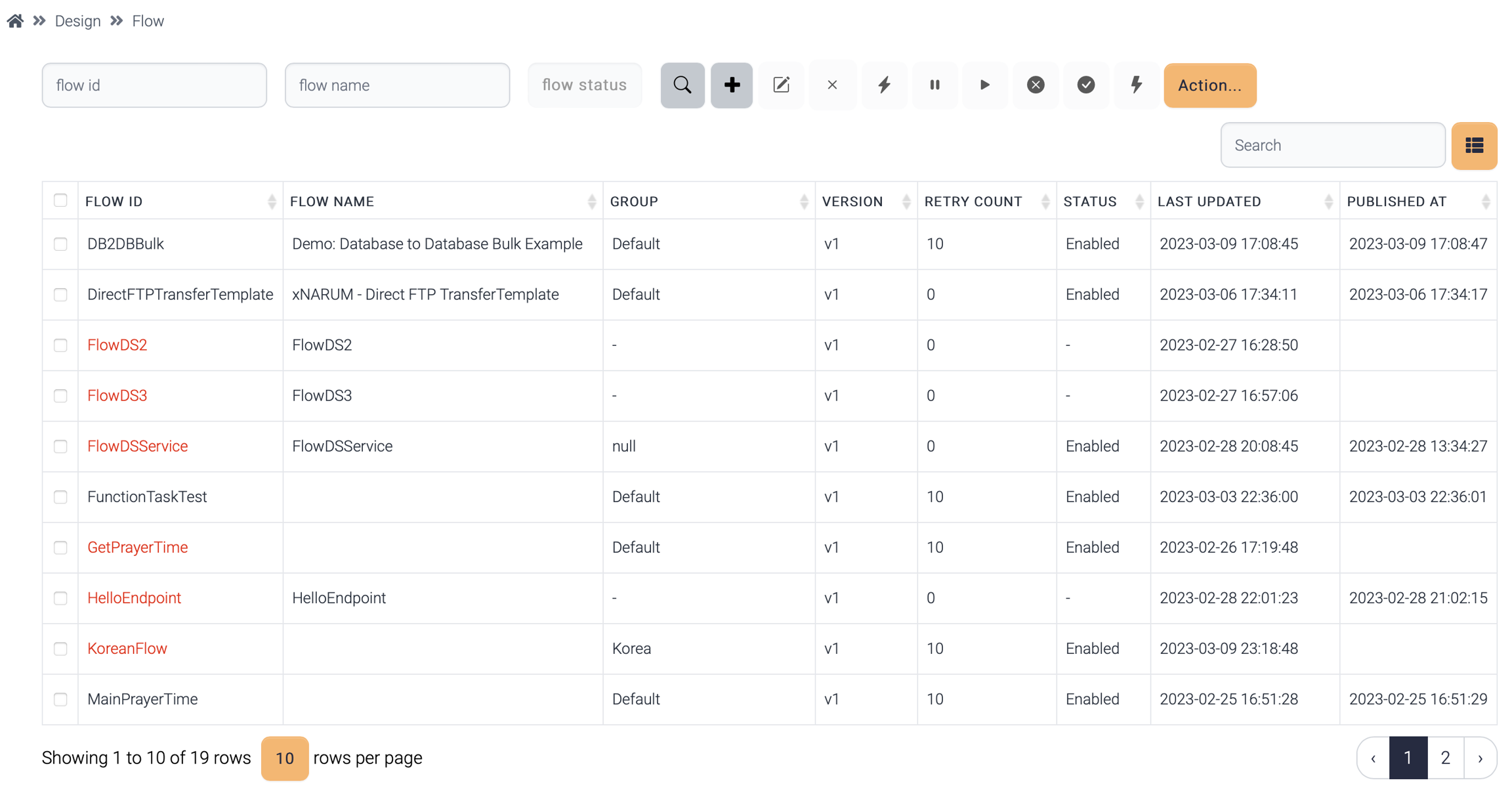 A flow generated by a normal user belongs to the group and this flow is not visible to the users of different groups. Likewise, system, data structure, field group, field are invisible to other groups.