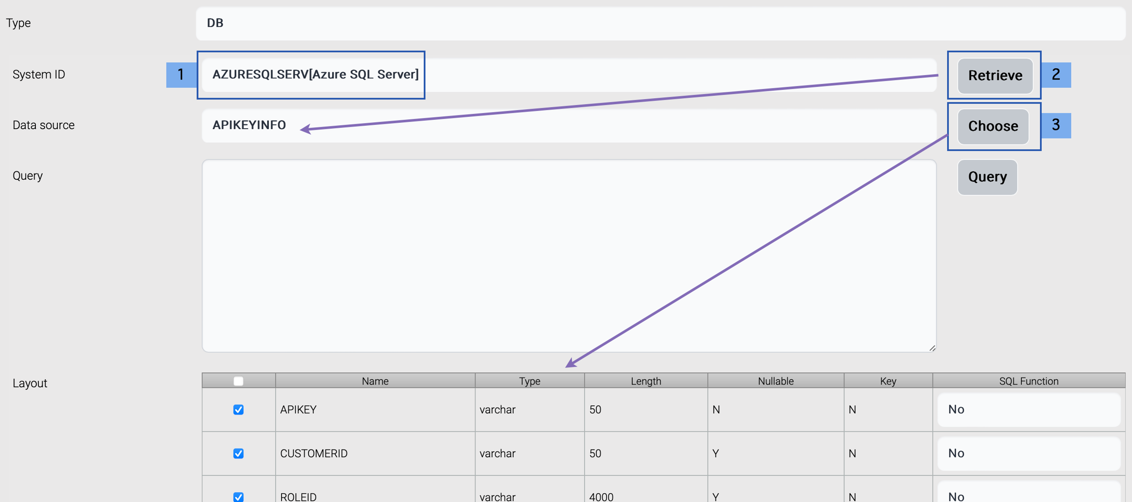 The data structure from database requires system information. The target database should be registered before this step. These are the steps to create a data structure from database.