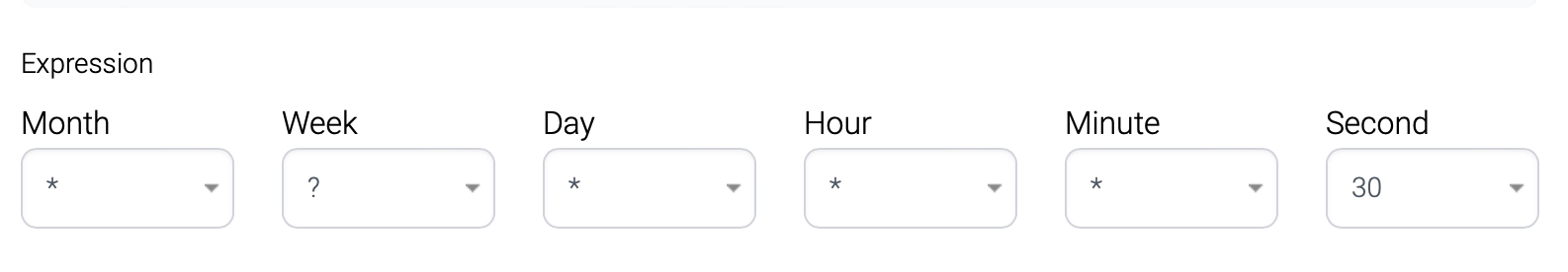 A cron expression is a string comprised of 6 or 7 fields separated by white space. Fields can contain any of the allowed values, along with various combinations of the allowed special characters for that field. The fields are explained in the following table: