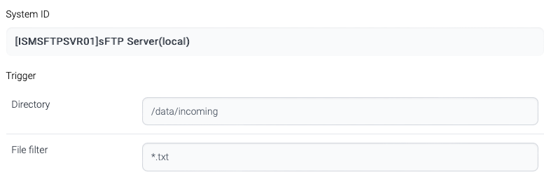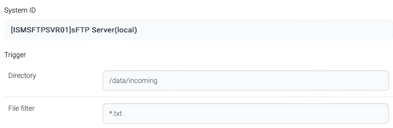 Trigger flow type requires (s)FTP server and file information. ISM scheduler connects to the (s)FTP server and checks the files exist. If the condition matches, the linked flow is executed.