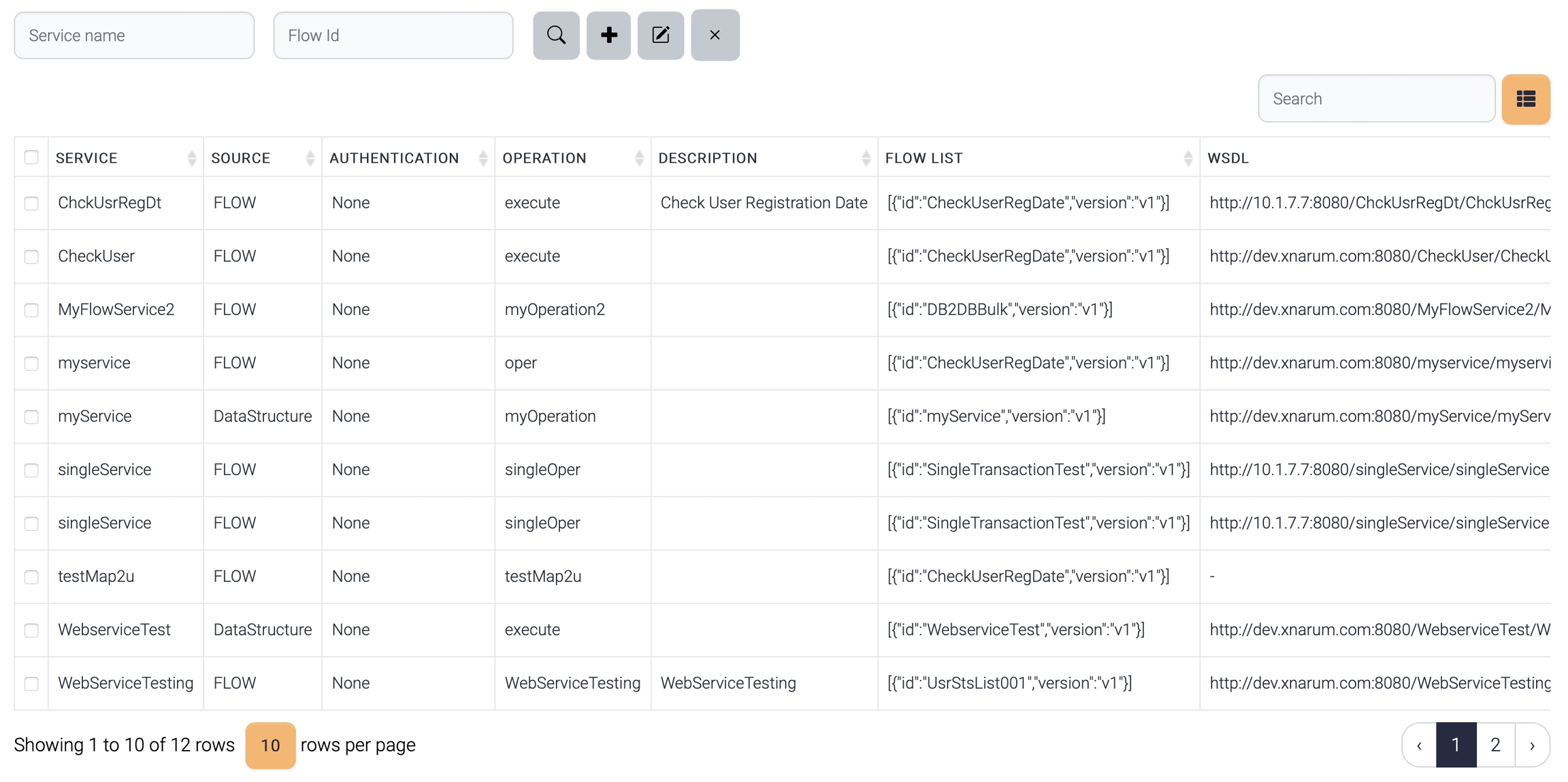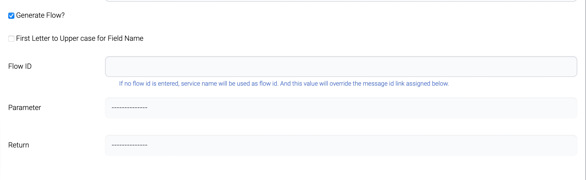 This web service generates a flow with only a few components. The flow id is assigned with the service name.
