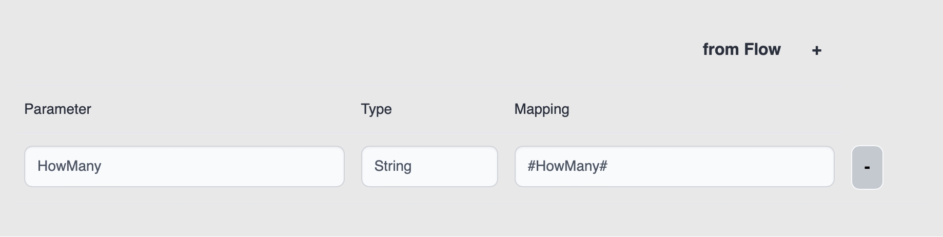 This component contains the name of the request parameter. The purpose of this component is to expose the request parameter to this flow. This parameter can be used in the next steps.