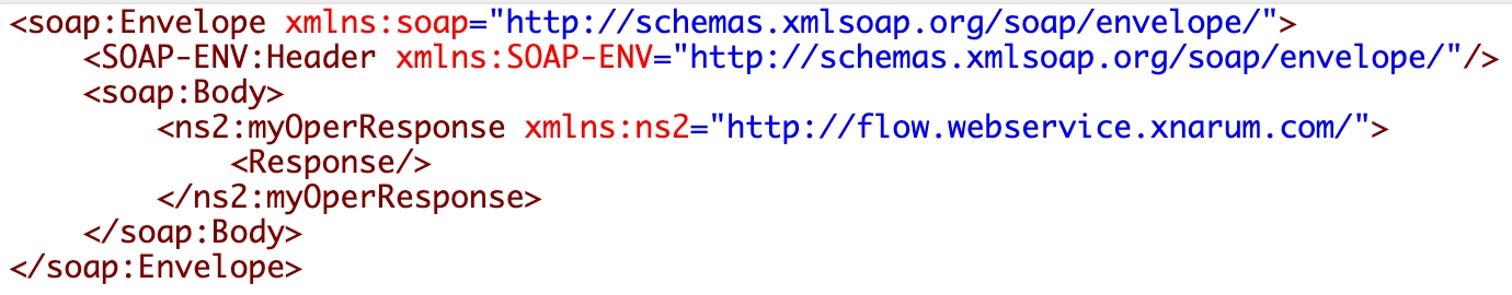 Target namespace of the generated web service is http://flow.webservice.xnarum.com by default. This name comes from the default package name of the generated java classes and is in the exactly reversed order of the package.