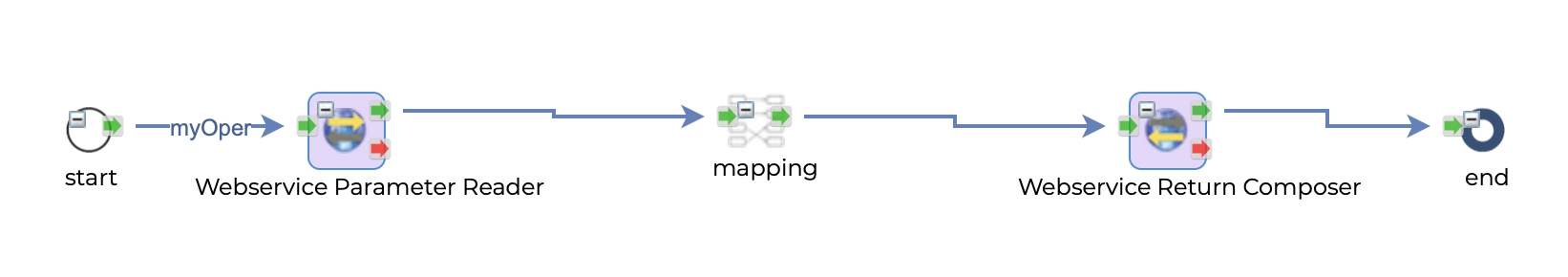 This component is used to generate response data to the client. The result of this mapping is the input of Webservice Return Composer component.