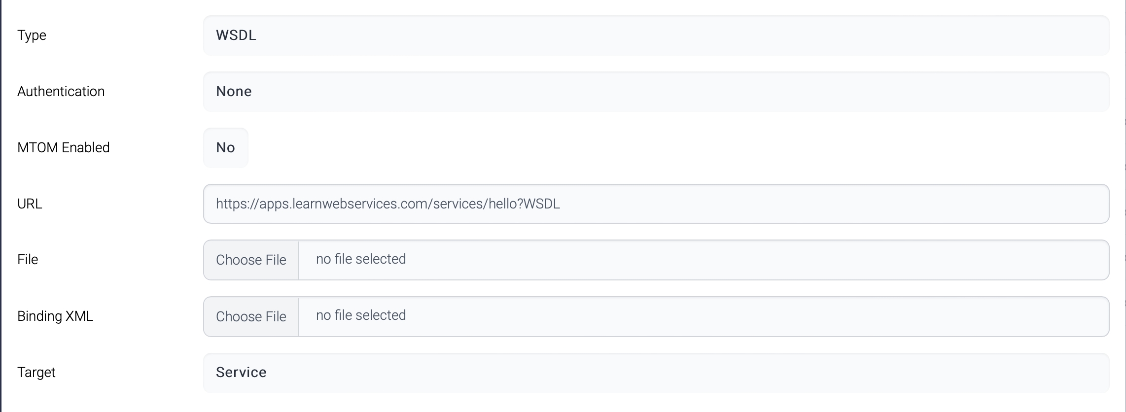 Either URL or File is used to generate a web service.