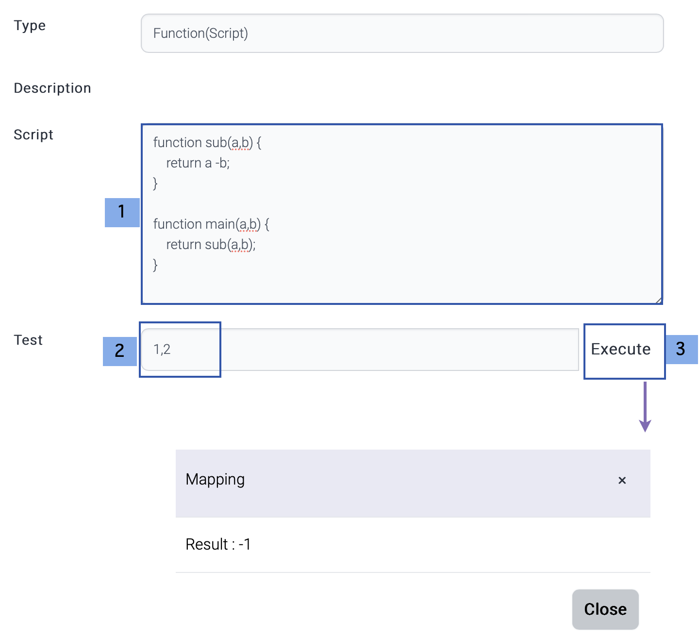 JavaScript type function executes a function. The script can have more than one functions. The detail information of how JavaScript works can be found here.