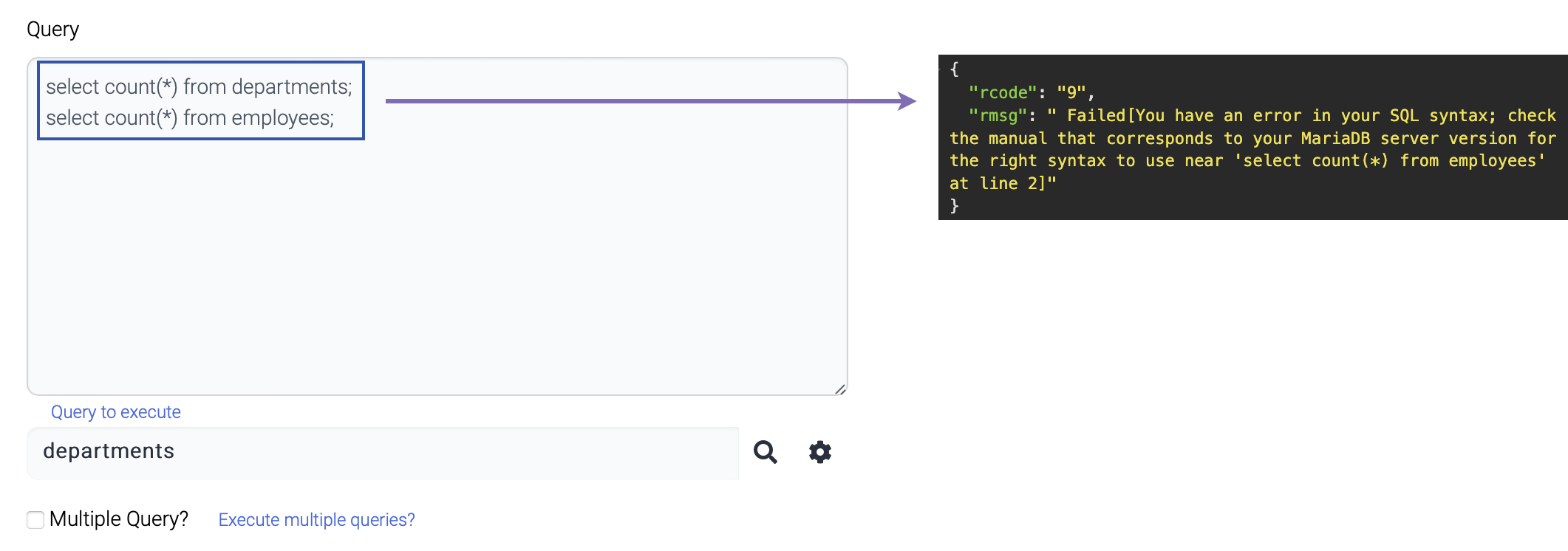 Otherwise, SQL Executor executes whole queries in a single statement. Whether those whole queries are acceptable depends on the database and jdbc driver. The sample below is the result to maria DB and with mysql jdbc driver.