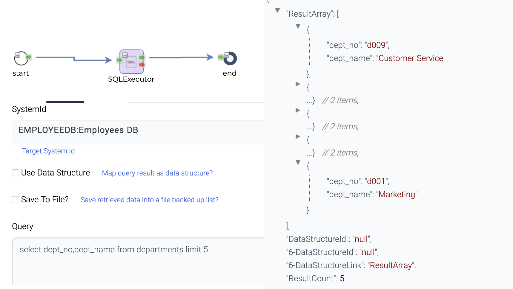 This component is used to execute single or multiple SQL queries on the target database. The component can be configured with SQL statements that will be executed against the target database. The results of the query are sent to other components for further processing. This component is useful for tasks such as data retrieval, data updates, and database schema modifications.