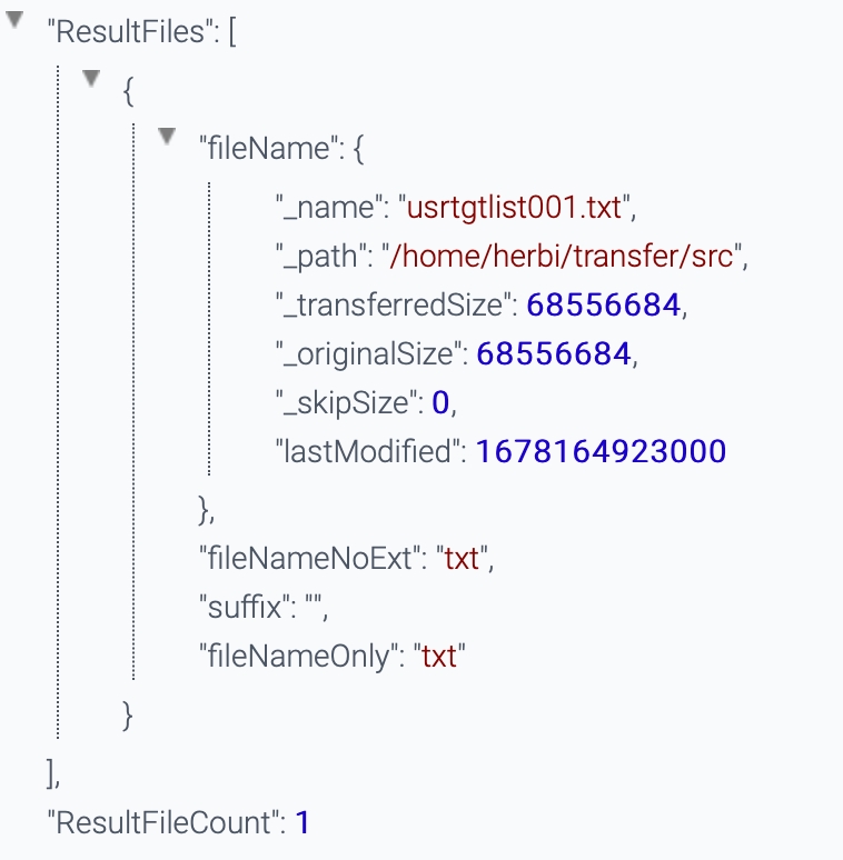 Result file information. This is a list of the transferred files.