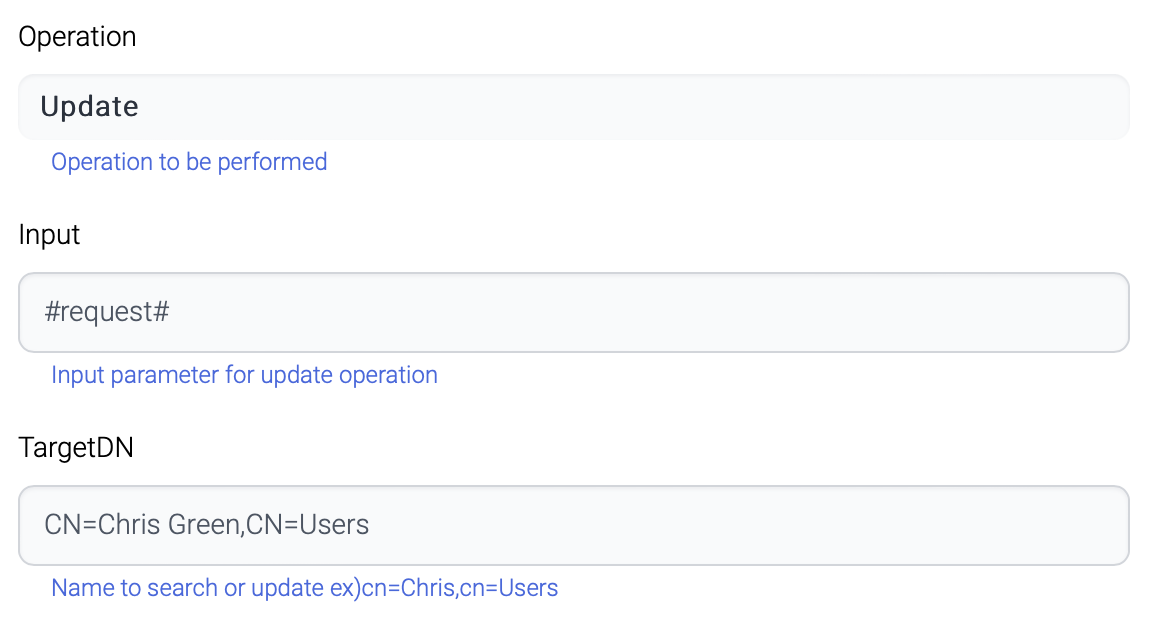URL : http://localhost:8080/ api/ LDAPTest01/v1?__RoutingPath=update-v1